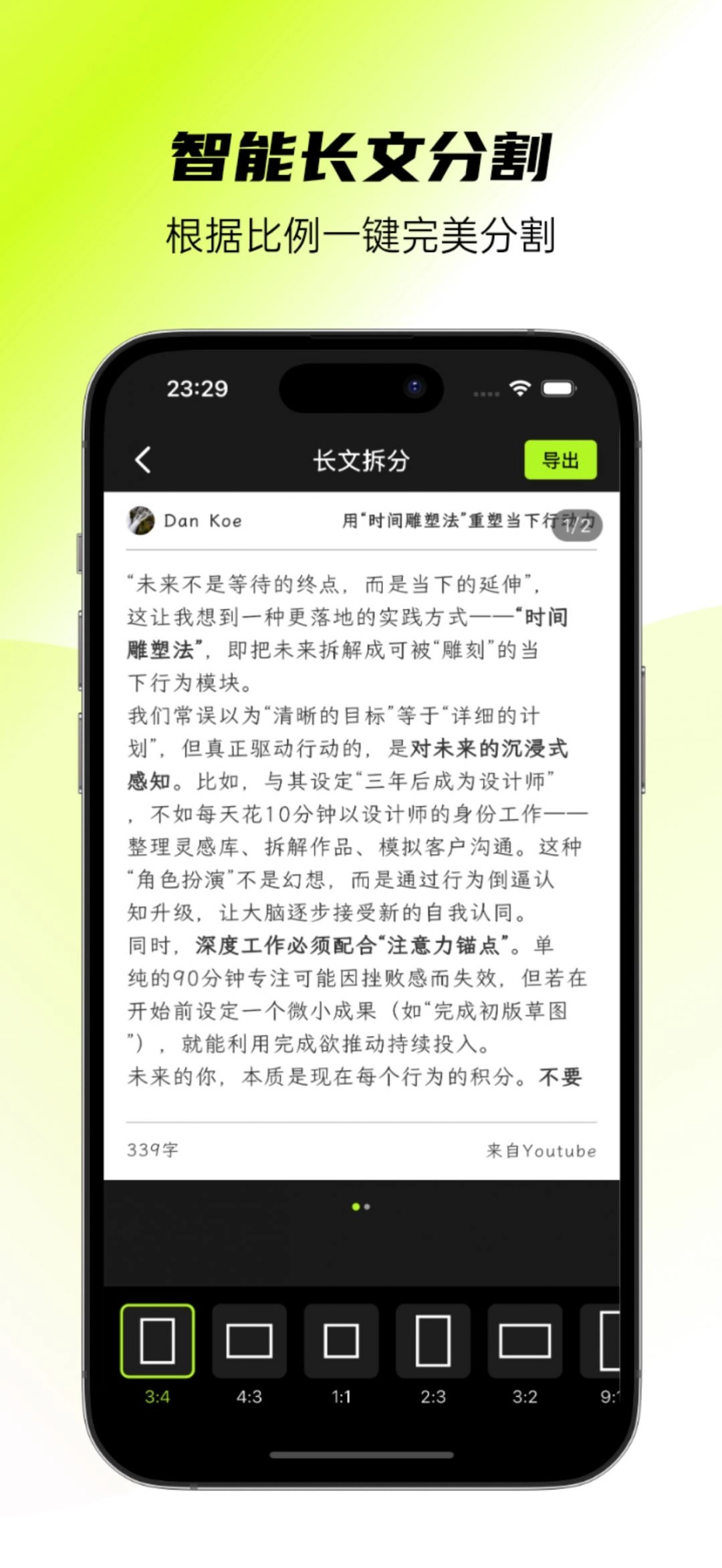 长文自动分段:复制万字文案,一键拆成多张卡片