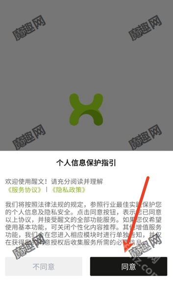打开醒文点击同意