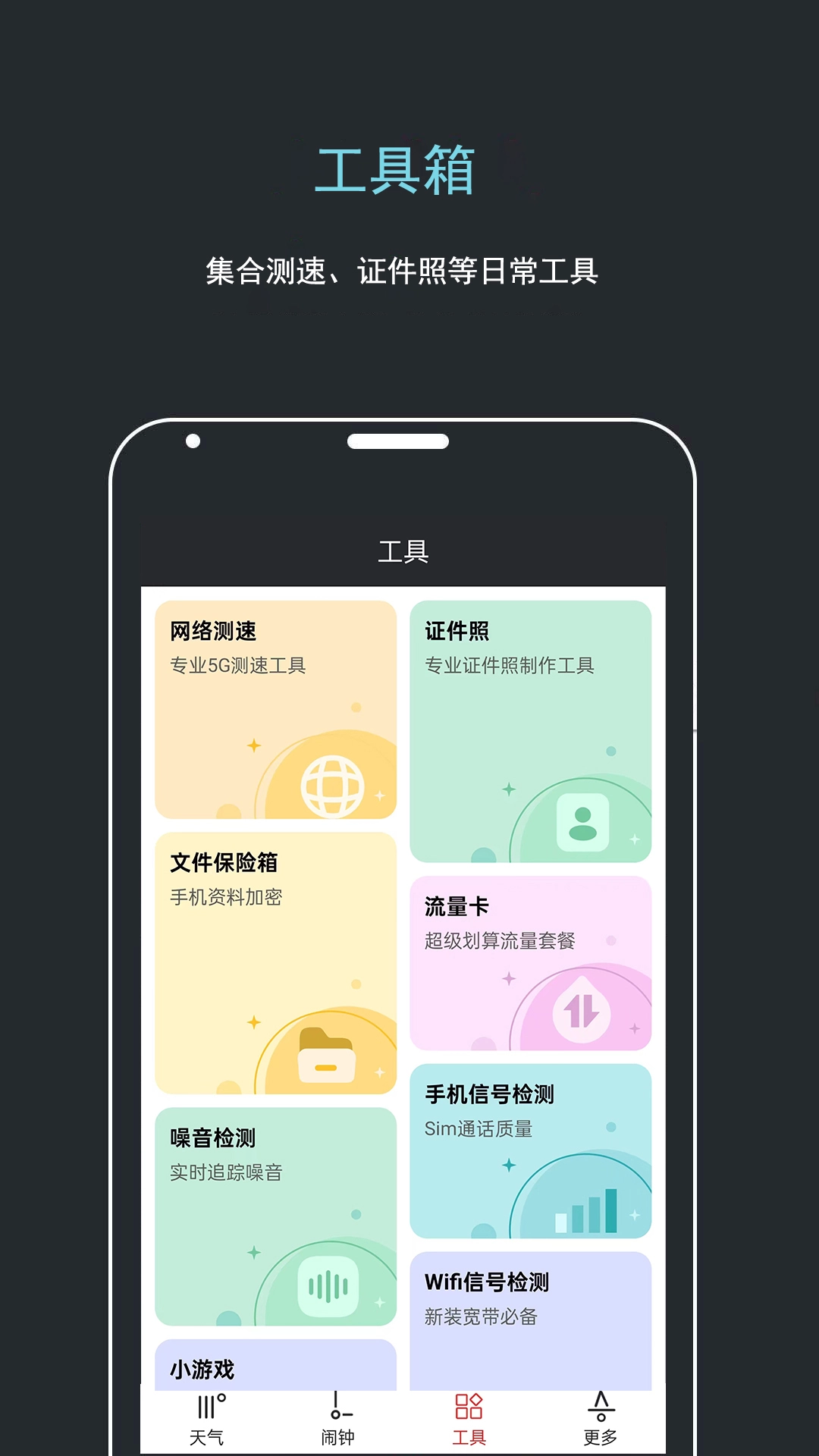 哒哒天气闹钟具备专业的闹钟功能,能协助用户准时起床;同时,软件还提供天气预报服务,让用户实时掌握当日天气状况,涵盖温度、湿度、风力以及空气质量等信息。此外,它还包含多种实用功能,比如专注于日程记录,用户可在日历上清晰查看各月份的重要日程安排;更有免费工具箱供用户体验各类工具。