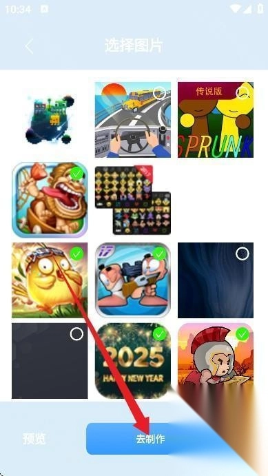 6、然后从本地相册中选择一些图片资源,接着点击右下角的【去制作】,然后到了制作界面,如图所示,这里可以添加滤镜,转场和音频。