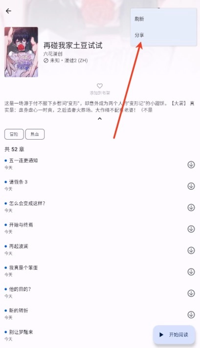 5、进入自己喜欢的漫画页面,然后点击开始阅读
