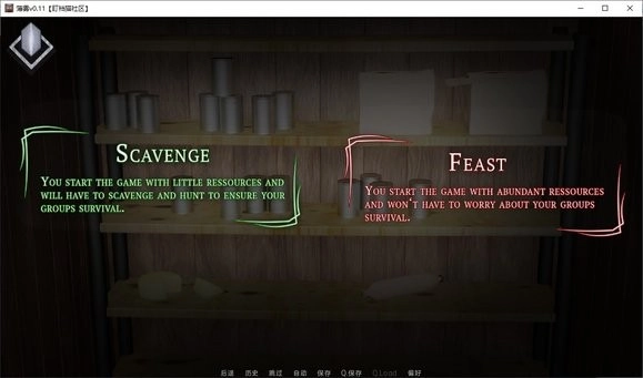 - 拾荒(SCAVENGE):游戏开始时你的资源十分匮乏,你得依靠躲避危险与搜寻猎物的方式,来保障团队的生存。