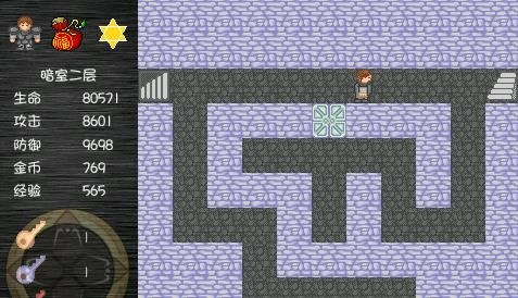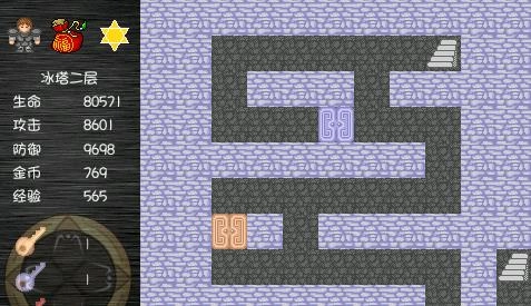 冰二:一路推进到冰三,留意暗墙。这里需要提醒的是,先不着急处理紫骷髅,优先击杀史莱姆获取宝石,等防御数值达到652时,再去对付紫骷髅。