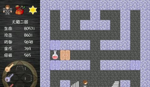 大殿二层:咳咳,接着执行三光政策,留意暗墙,之后回去把攻击提升到1408,再前往大殿三层。