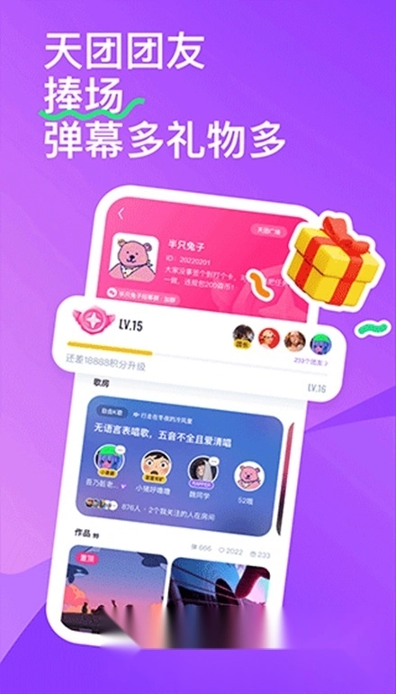 语音弹幕打造大型共创现场:按住即可录制语音弹幕,发送给心仪的作品,还能多人接力接歌、共同合唱或进行旁白互动,解锁无限玩法可能。