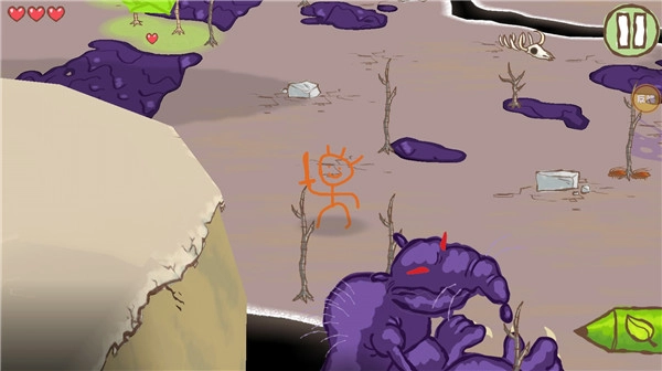 继续往前走就能看到第二只大老鼠怪物,同样一边画树叶一边躲避就能消灭它,之后我们就能救出第二个火柴人了。