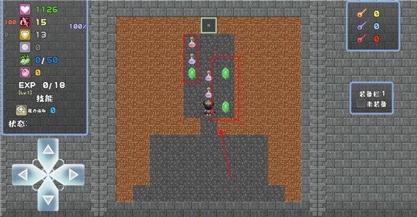 地图里会散落着各类道具,我们能通过触碰来拾取它们,比如红药水和蓝药水这类道具,就可以帮助我们恢复蓝量。