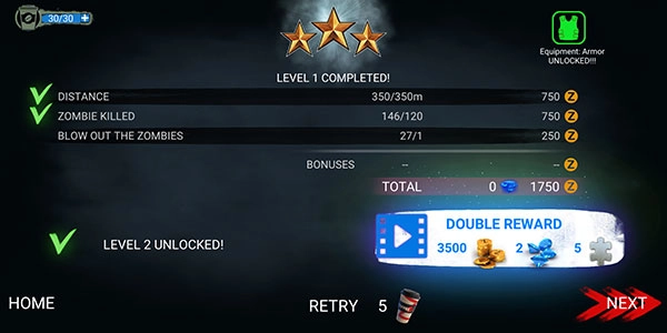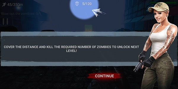 线性关卡要求同时完成距离目标和击杀目标,建议优先向前推进,在移动过程中顺便消灭僵尸,尽量不要在同一个地方待太久,以免引来大量僵尸。
