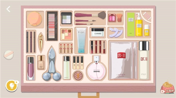 将粉扑放进去,然后盖上盖子,再放到左上角。