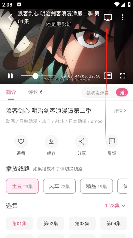 2、接着任意播放一部喜欢的动漫,这里以【浪客剑心】为例