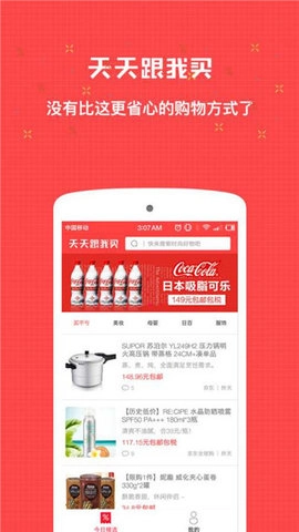 《天天跟我买》是一款十分实用的线上购物平台,平台内商品种类极为丰富,用户可在此自由选购心仪商品;平台还提供大量免费优惠券供用户领取,并且设有每日签到奖励机制,需要用户每日登录平台完成签到操作。在这里,你能体验到与众不同的购物模式,平台的优质服务也将为你带来更舒适的购物感受。