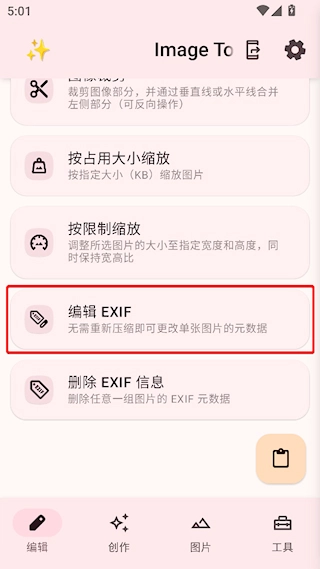 在编辑界面向下滚动,找到编辑EXIF的功能选项,点击进入该功能页面。