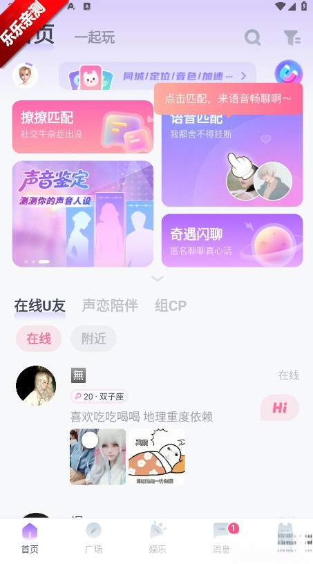 uki是一款面向年轻人的社交应用,核心定位是“兴趣社交”。它借助多样化的互动场景和智能匹配系统,助力用户迅速找到志趣相投的伙伴,以此满足大家在陪伴、恋爱、兴趣交流等方面的需求。软件提供文字与语音两种匹配方式,用户能快速和全球范围内的用户建立联系,从而驱散孤独感。平台会依据用户的兴趣标签(像二次元、阅读、运动等)以及行为数据,推荐匹配度极高的好友,以此提升交友的精准性。此外,还设有多人语音聊天房,用户可以加入各类主题派对(比如桌游、K歌、深夜谈心等),体验沉浸式的社交氛围;同时也支持创建或加入兴趣群组(例如游戏、音乐、电影等),方便用户与同好进行深度的交流互动。