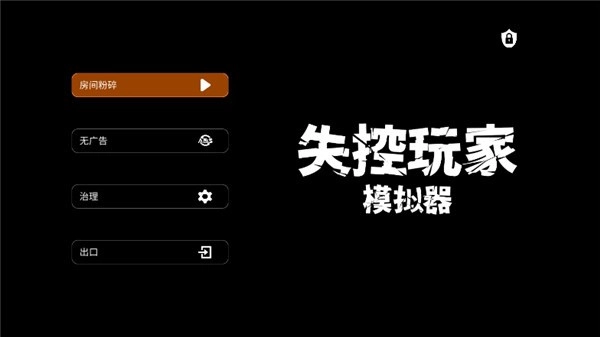 1、打开失控玩家模拟器正版后,我们能看到房间粉碎、、治理等选项。