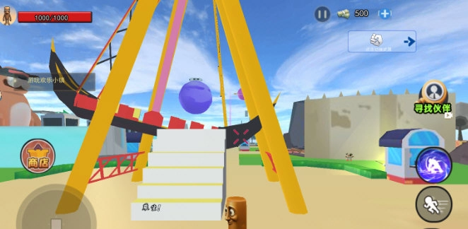 开始探索游戏地图,发现一艘海盗船,点击乘坐按钮就能体验海盗船;