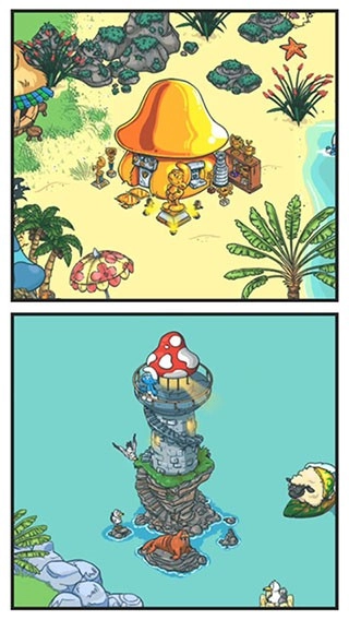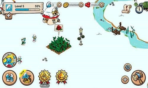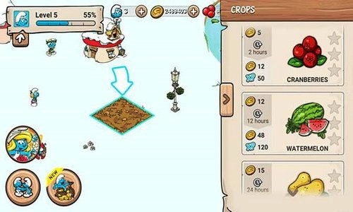 2、蓝精灵村庄通过收获果植来赚取更多的收益。