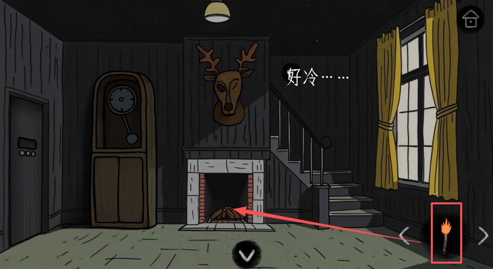 然后用火把将柴堆点燃,壁炉上鹿头的右眼会睁开