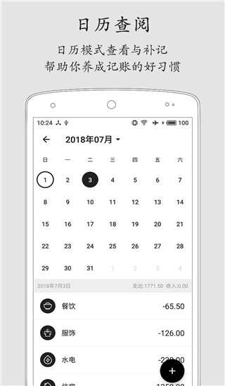 日历查询:能够迅速查看每个月的账单,每一天的开销详细情况都清晰明了。