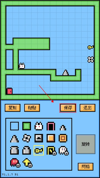 这是一款可以自制关卡的经典迷你[one-button]平台跳跃游戏: