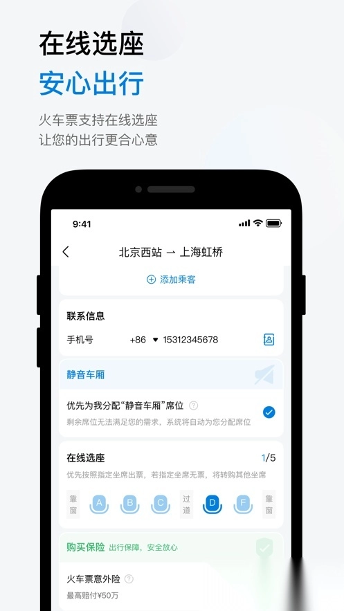 在线预选座位,旅途更加安心