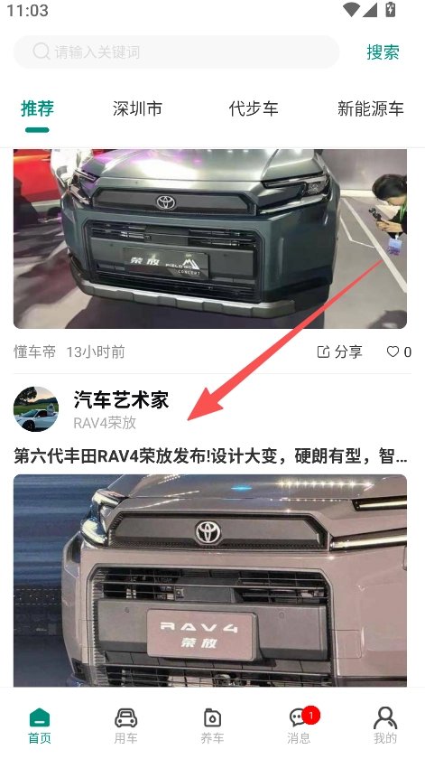 浏览首页的汽车资讯,比如第六代丰田RAV4荣放的发布相关内容。
