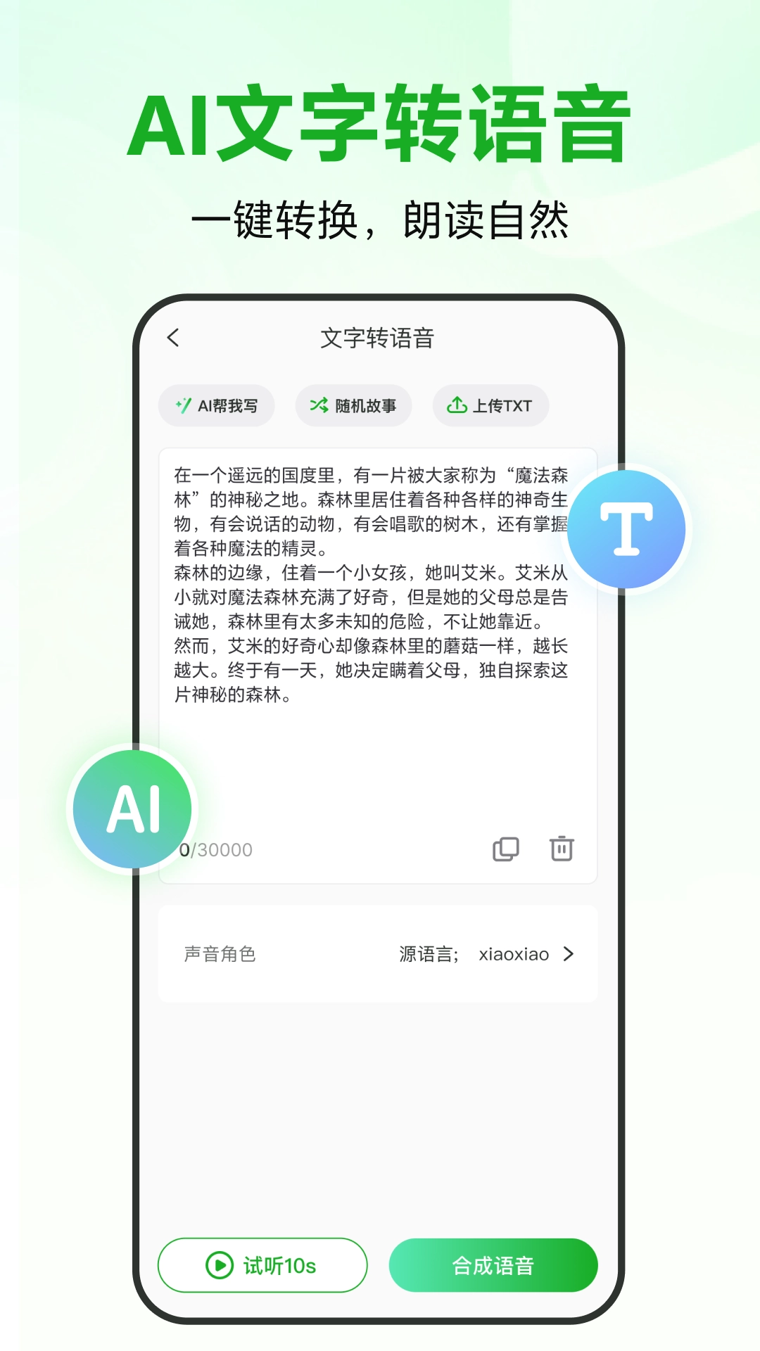 2、支持三种文本输入方式:AI辅助创作、随机生成故事以及上传TXT文件