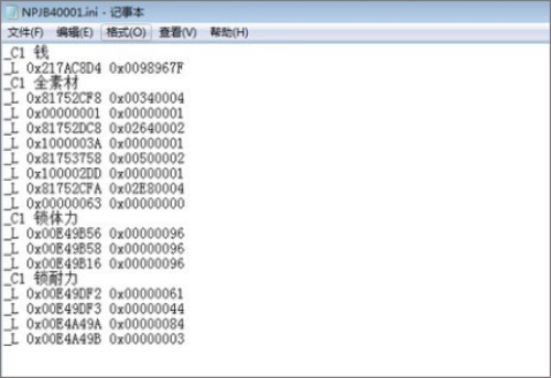 3、通过记事本打开并进入编辑界面,在这个界面中能够输入金手指的作弊码。