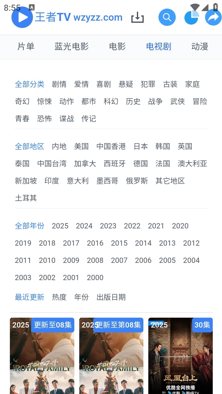 2、进入影视分类页面后,可利用分类、地区、年份等筛选条件,查找自己想看的剧集。