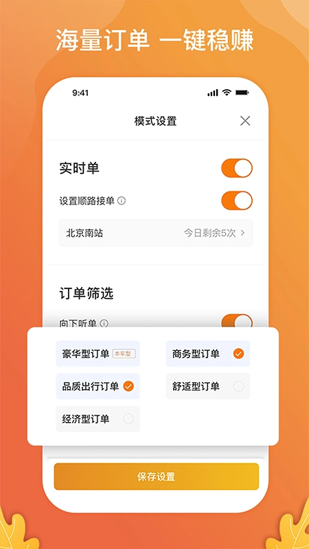 订单推送功能:能够实时接收订单推送信息,助您便捷了解周边的订单动态。