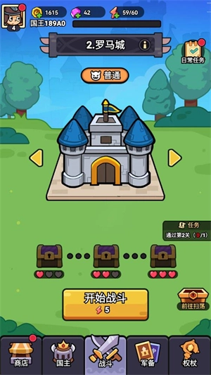 在正式开始挑战前,你可以选择不同的国王来进行闯关,每个国王所拥有的配备都是不一样的。