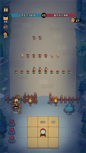 4、进入战场后会自动开启战斗,你的士兵与国王会主动攻击敌人,待所有敌人都被消灭干净,就能进入下一波战斗了。