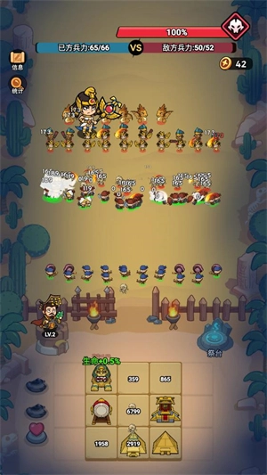 1、搭配不同的兵种开始游戏作战冒险,选择不同的阵容竞技冒险