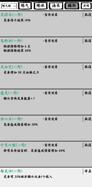 辅助功法选择