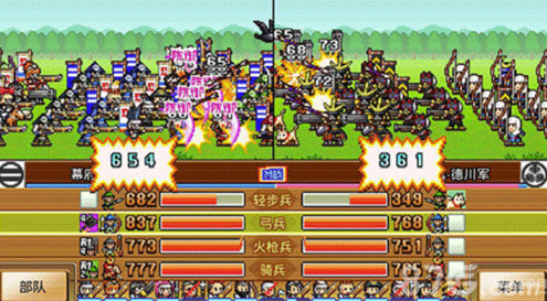 打到真德川之前,前排连击+战术+防铁炮+防足轻后(两个看对方阵形安排),弓箭1战术,铁炮连射+战术+防弓箭,骑兵战术+防骑兵,可以毫无压力打到国王42波左右,打到这里,武器才+24,衣服才+30。打到这里,开始统一全国,打这个主要为了赚钱以及拿装备。遇上铁炮兵多的场合,安排人物站在中后排,弓箭先打铁炮。
