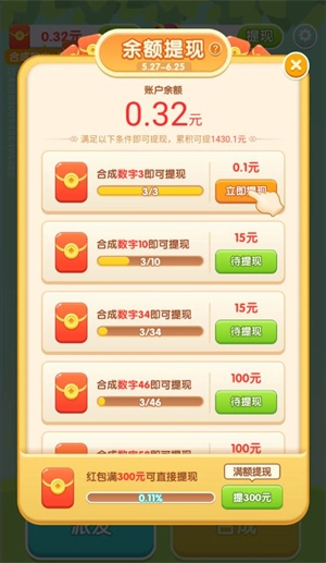 确实如此,玩家进入游戏后,通过合成数字就能获取红包,每合成一个指定目标就能得到相应红包,每达成一个目标都能进行一次提现操作。在合成过程中,还能领取额外的红包奖励。游戏内所有红包均按百分比提现,合成的数字目标越大,对应的提现比例也就越高。