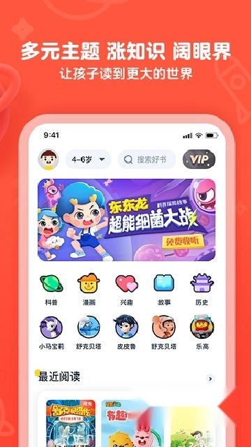 多样化阅读:有声书、主题丛书、电子书、知识专栏、漫画等多元阅读形式,助力孩子主动开启阅读之旅