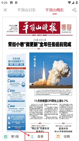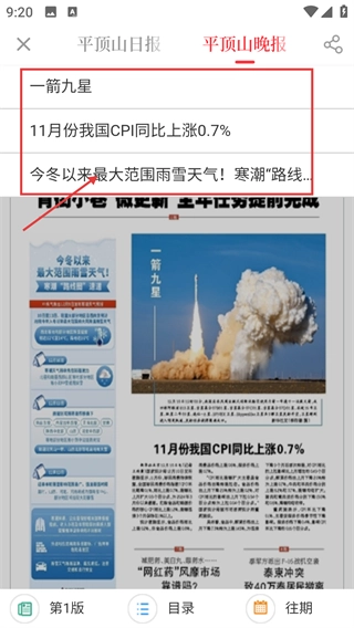 在目录列表里选择【一箭九星】这类条目,就能快速跳转到报纸中该内容对应的板块。