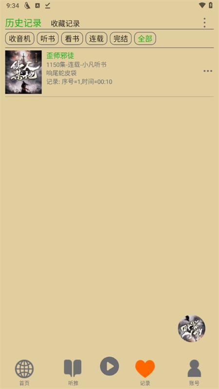 在记录页面中,我们可以查看自己的历史记录和收藏记录。
