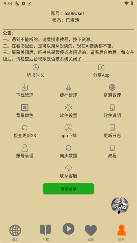 在账号界面中,我们能够开展管理、缓存管理、资源管理、背景颜色修改等一系列操作。