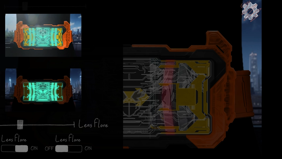 按下杠杆式的开关,变身器即刻会闪烁光芒。