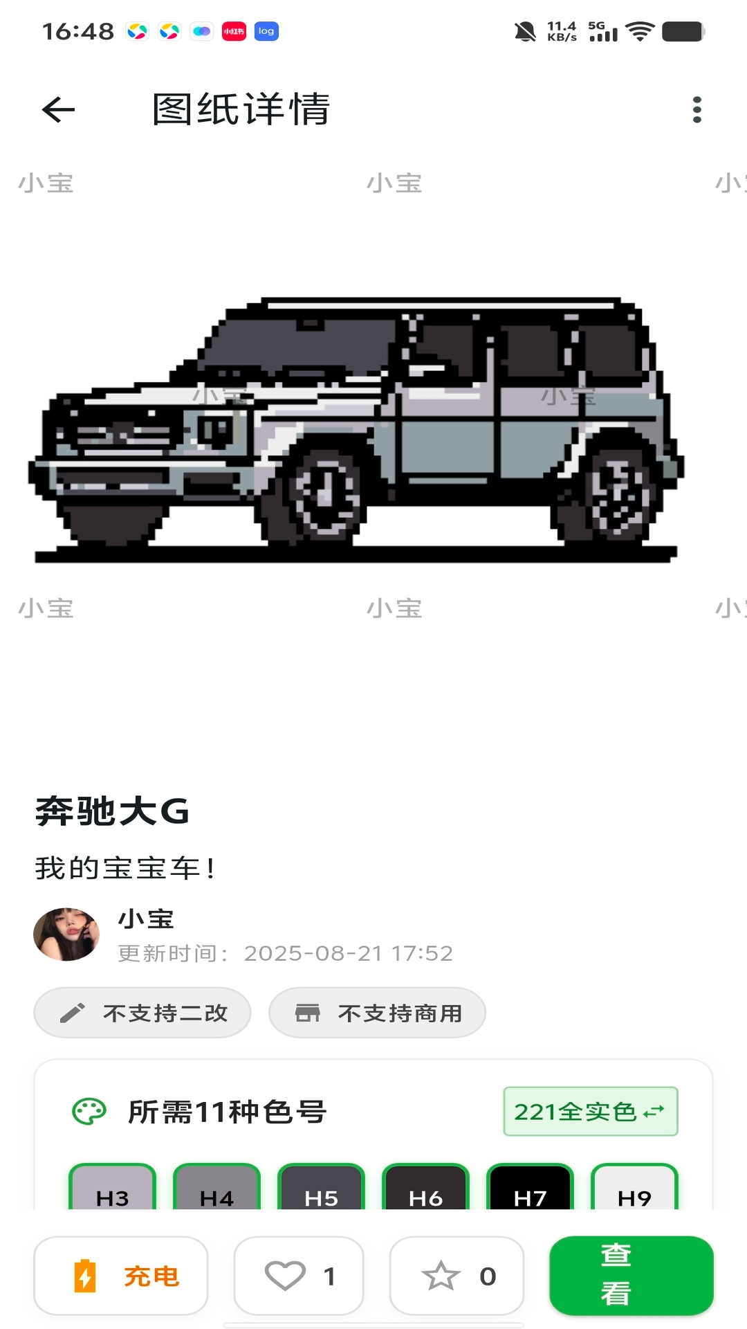 2、支持上传图片,快速转变为拼豆图纸,十分的方便,有意思。