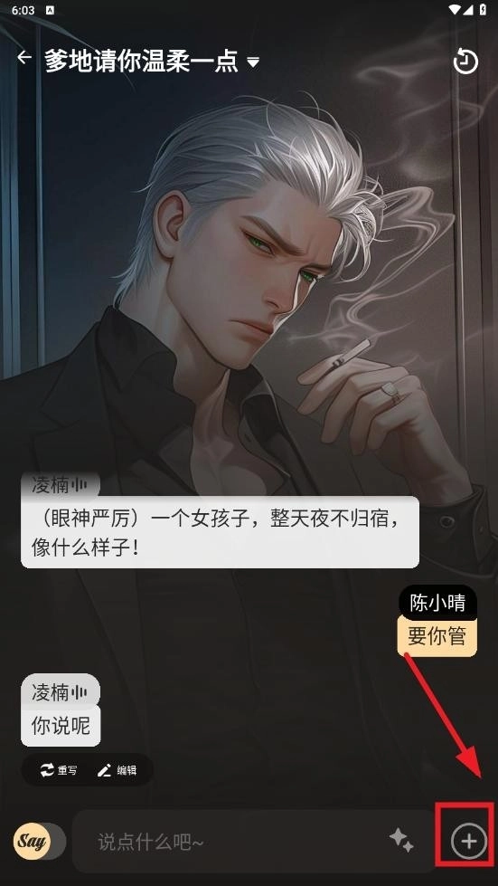 1、进入saylo应用,找到你想要删除的剧本对话,点击右下角的加号按钮将其打开。
