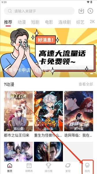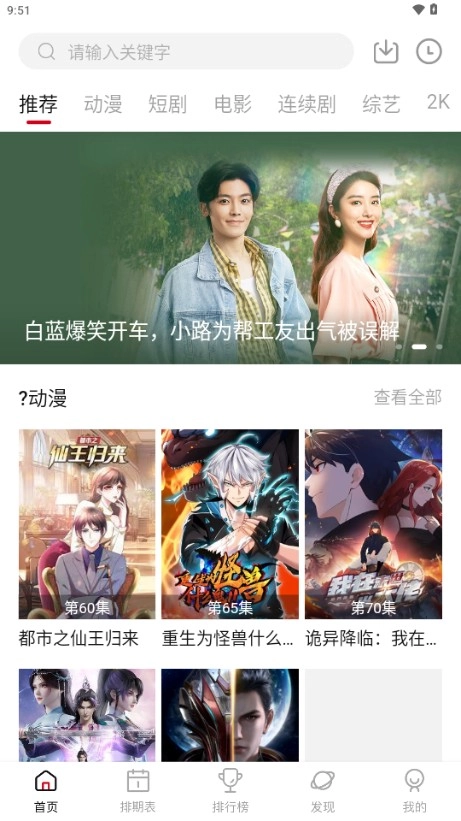 2、到达主页即可查看动漫,短剧,电影,电视剧,综艺;