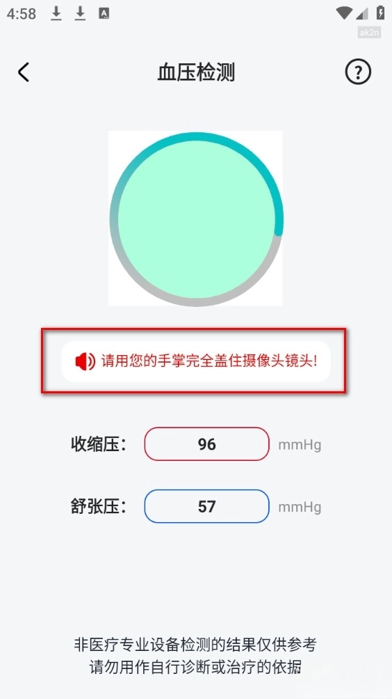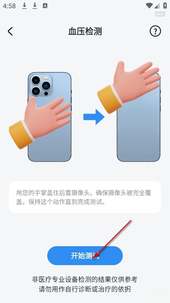 将手掌完全盖住镜头即可得到准确数据