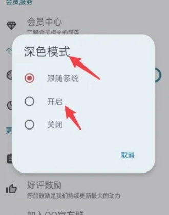 在我的页面,点击【深色模式】功能进入