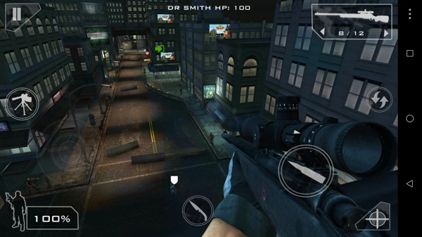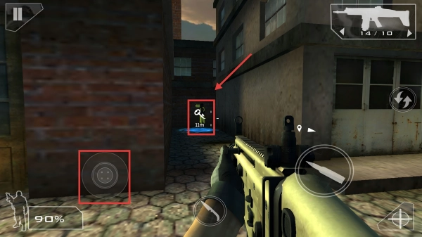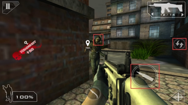 在战斗场景中,要瞄准僵尸的头部进行射击,借助右侧的换弹等按键,灵活地做出应对,通过精准爆头来消灭僵尸。