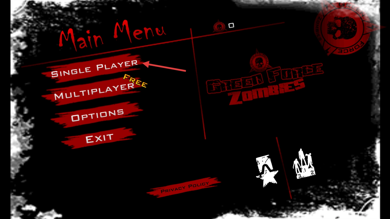 进入游戏主界面后,我们点击【SINGLEPLAYER】选项,开启单人挑战模式,独自与僵尸部队展开对抗。