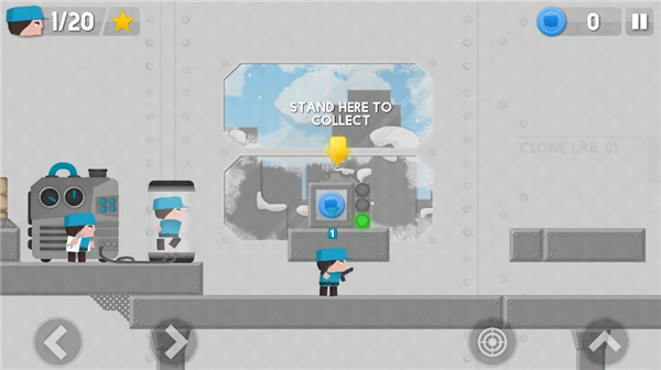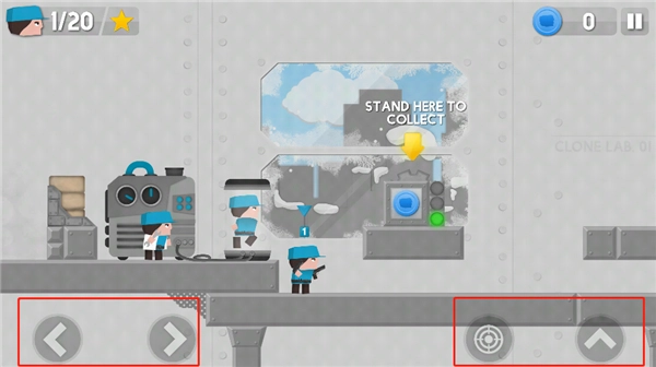 博士能够复制出属于自己的克隆小兵,这些小兵可以由玩家操控。玩家通过左侧操作来控制小兵的移动方向,右侧则负责控制射击以及向上跳跃的动作。