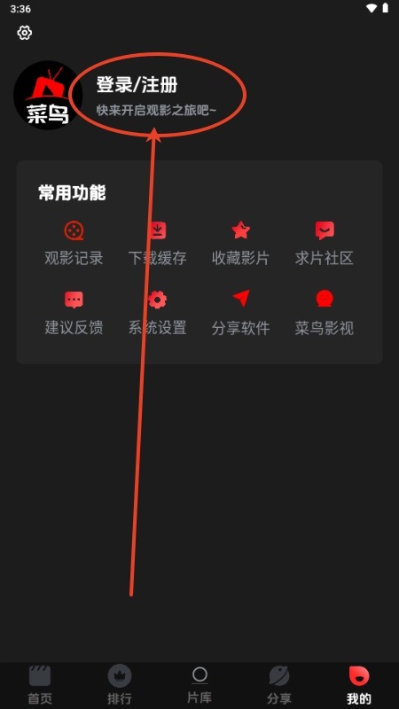 2、在“我的”页面中,点击“登录/注册”按钮;