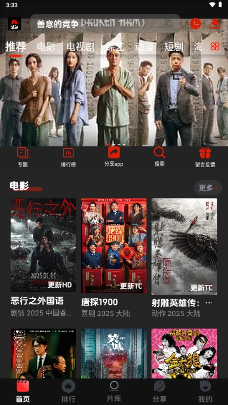 菜鸟影视汇聚了海量影视资源,涵盖电影、剧集、综艺、动漫等多种类型,无论是热门经典作品还是小众优质佳作都能在这里找到,而且所有内容都是完全免费提供的。